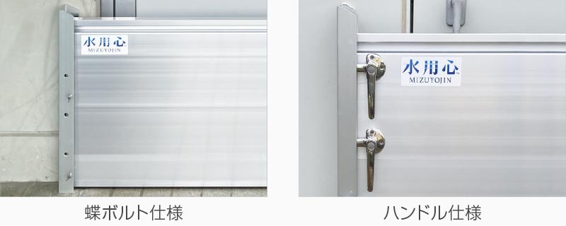 支柱をドリルビス等で既存のドアやシャッターに固定し床面、壁面の隙間をコーキング処理するだけで特殊な工具は不要です。現地に合わせ止水板の幅はアレンジ可能です。また、ドア種類によっては施工は不要になります。