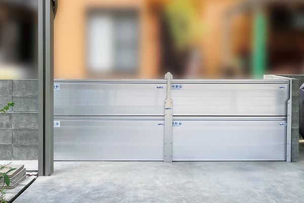 水用心はトラック部材を応用して作られた止水板です。止水板内部に水が入り込んで浮力が発生しないためその他の抑え金具は不要です。導入しやすい価格でかつ簡単に施工を行うことができ、有事の際には少人数で設置が可能です。